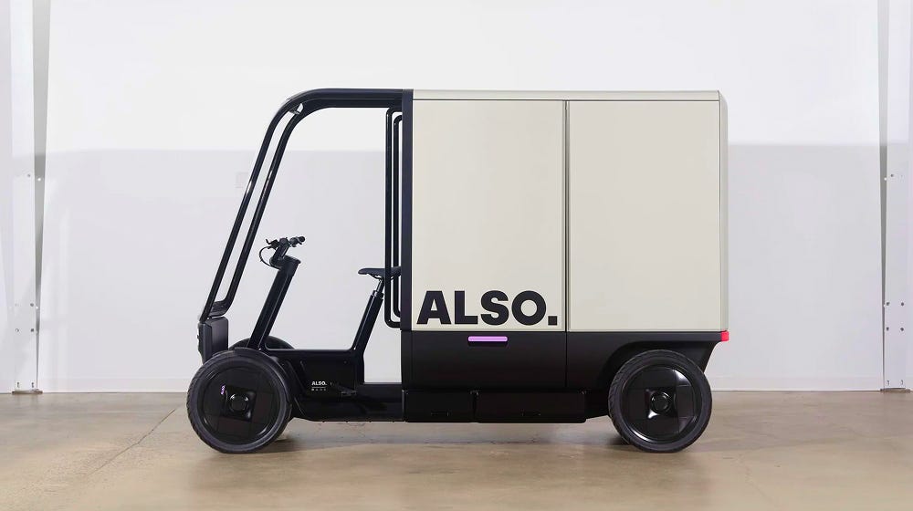 Driverless Doordash Also: Rivian e-bike spinoff Also agrees to manufacture autonomous delivery vehicles for DoorDash. This is the young company’s second foray into delivery -– it also builds pedal-assisted delivery vehicles for Amazon that can operate in bike lanes, a useful option in cities where car parking is sparse and expensive. There are no clues yet about what the autonomous vehicles will look like. Are we talking sidewalk robots or highway robots?